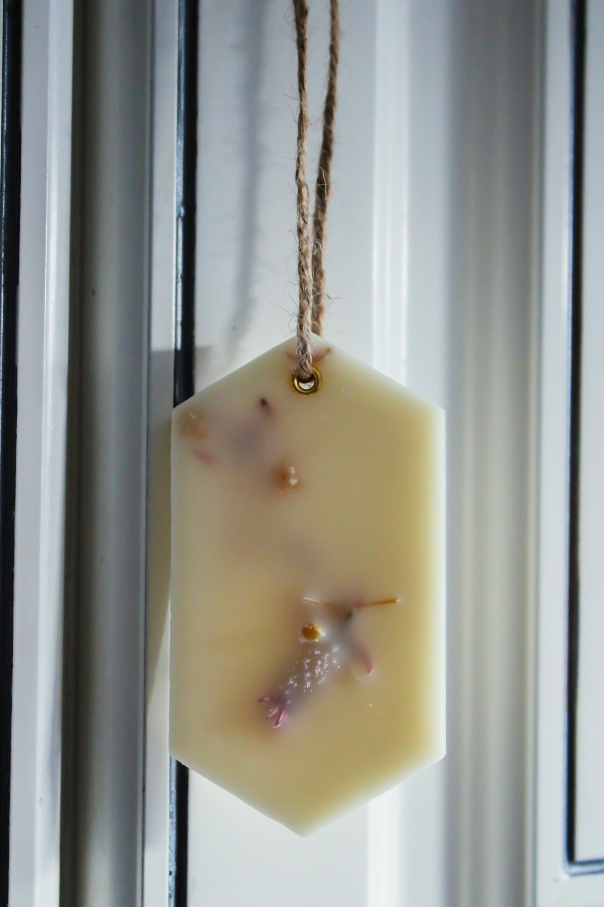 Fabriquée à la main en France, notre suspension parfumée est composée de cire végétale de soja 100 % naturelle et de parfums de Grasse. Elle diffuse doucement sa senteur dans une armoire, un dressing, une entrée ou une petite pièce.
