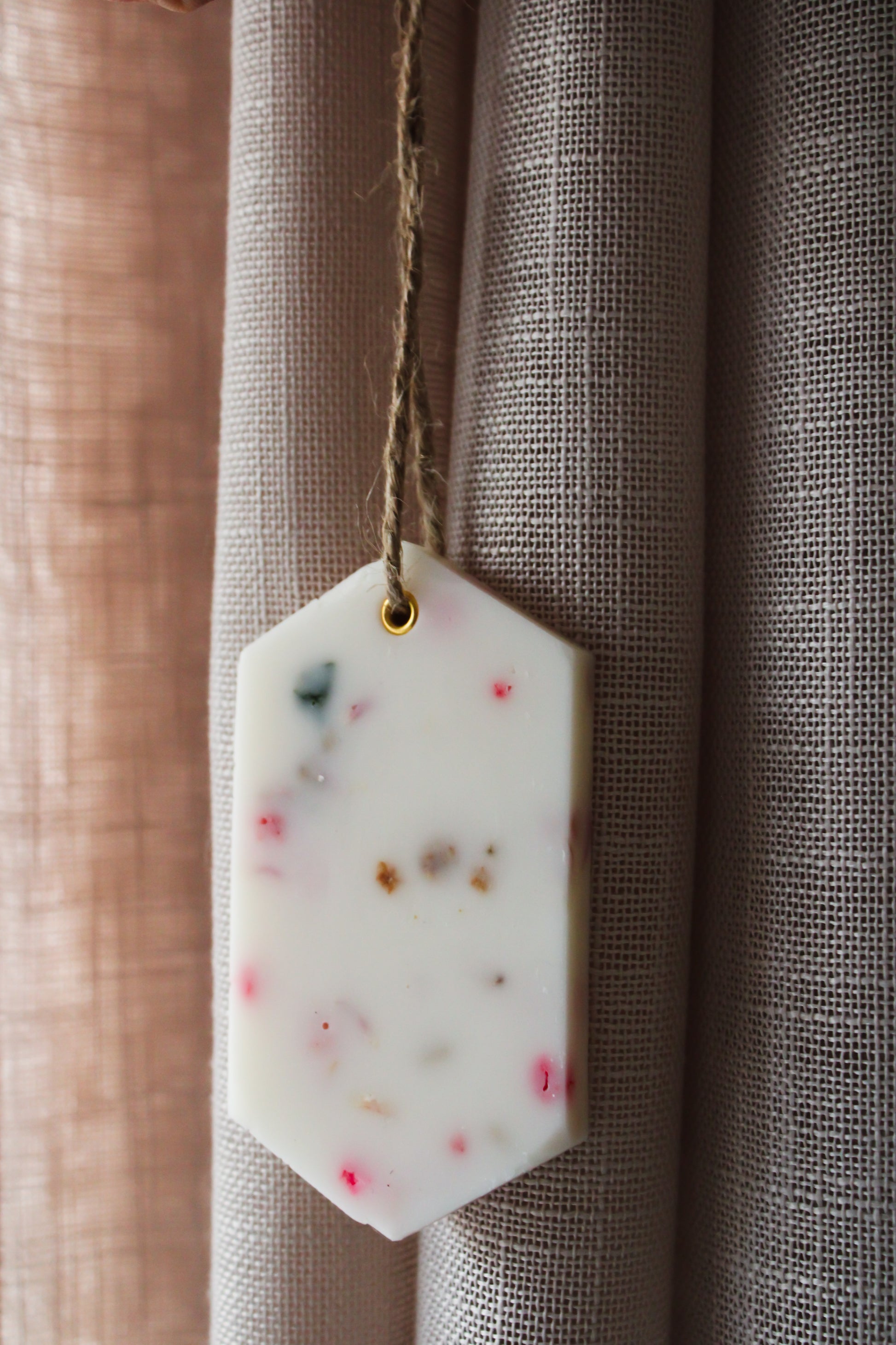 Fabriquée à la main en France, notre suspension parfumée est composée de cire végétale de soja 100 % naturelle et de parfums de Grasse. Elle diffuse doucement sa senteur dans une armoire, un dressing, une entrée ou une petite pièce.